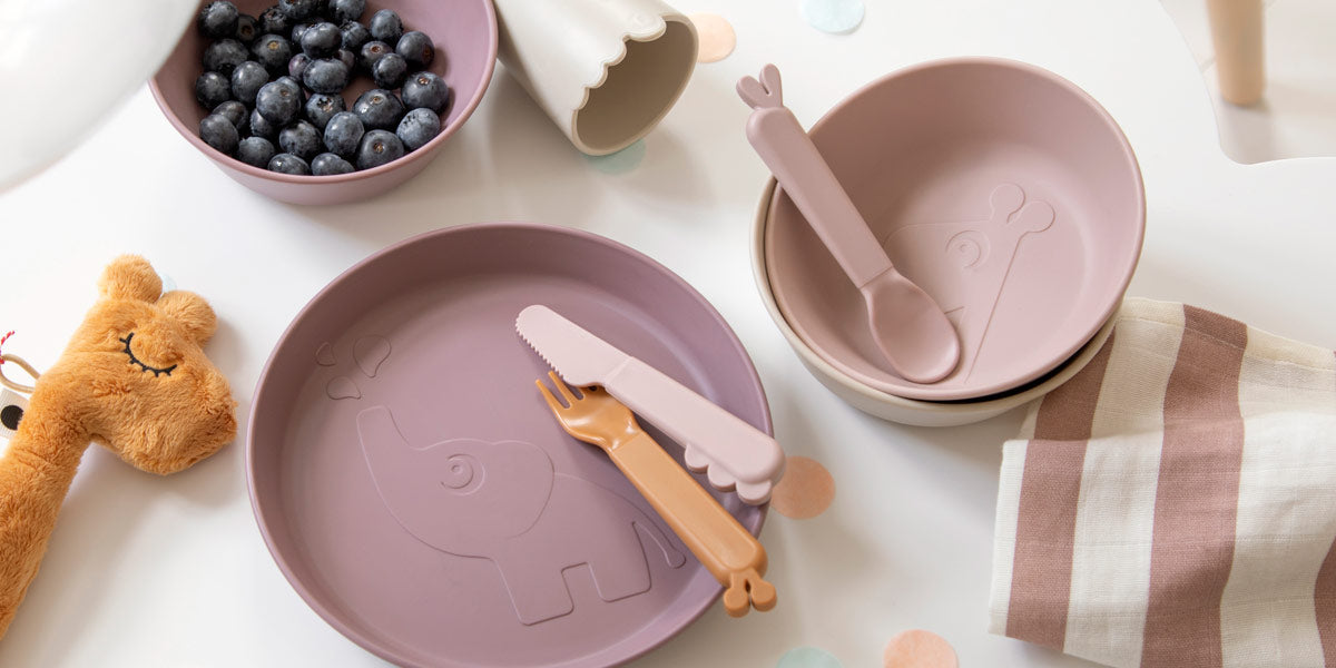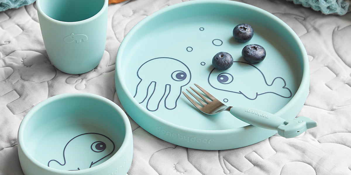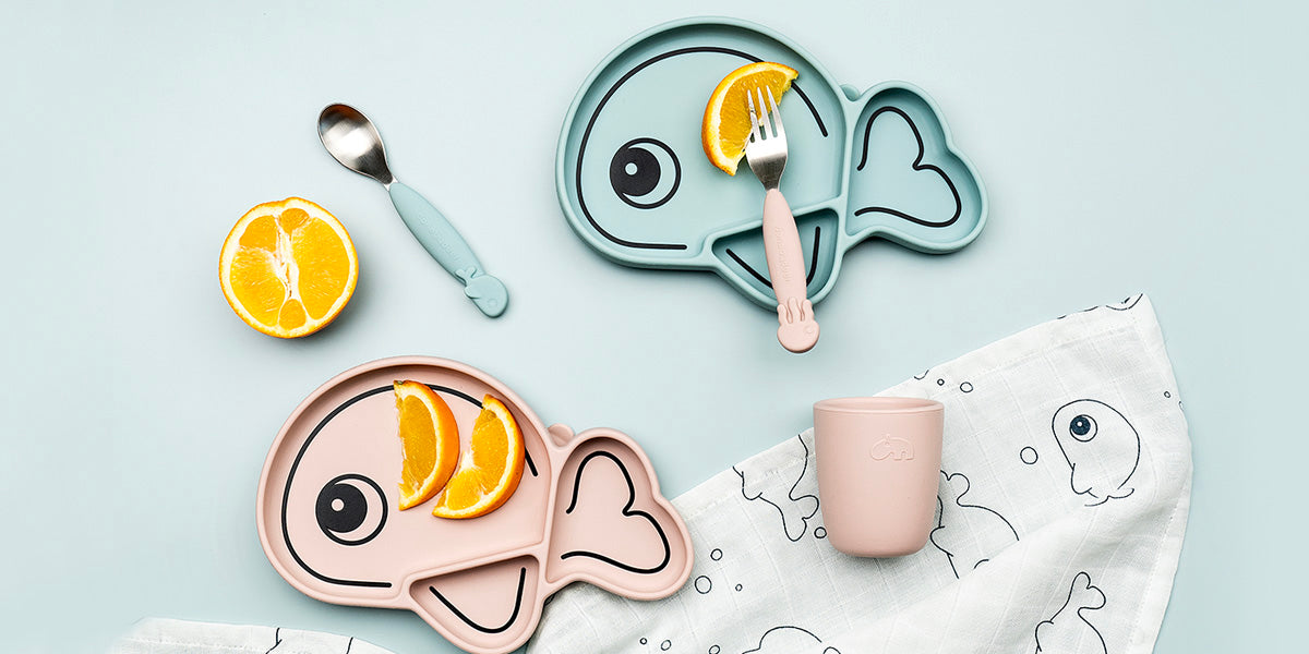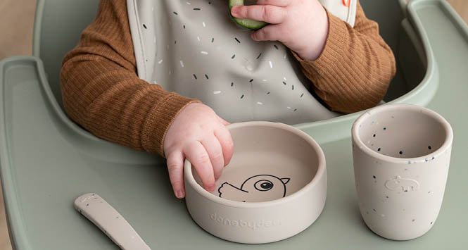 For babies we recommend our first meal sets with a spoon, bowl and cup designed for tiny hands and mouths. For toddlers our stick & stay plates and compartment plates are a great choice as they can help your child to become more independent when learning to eat.